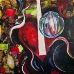 Sind es Galaxien, die geboren werden, oder Welten, die zerbrechen? Dieses Werk scheint das Universum einzufangen – irgendwo zwischen Urknall und kosmischer Erosion. Sphärische Formen schweben wie Gedankenblasen eines allwissenden Wesens durch Raum und Zeit, während Risse und Blitze zeigen, dass selbst das Ewige in Veränderung begriffen ist.